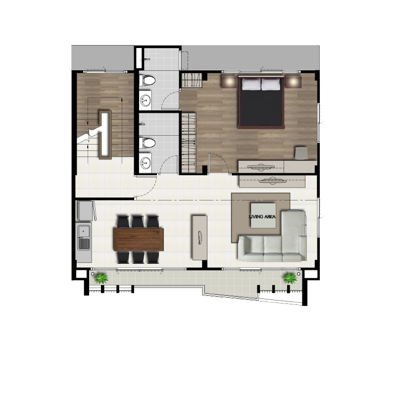 3 ห้องนอน 5 ห้องน้ำ พร้อม Duplex Living Room